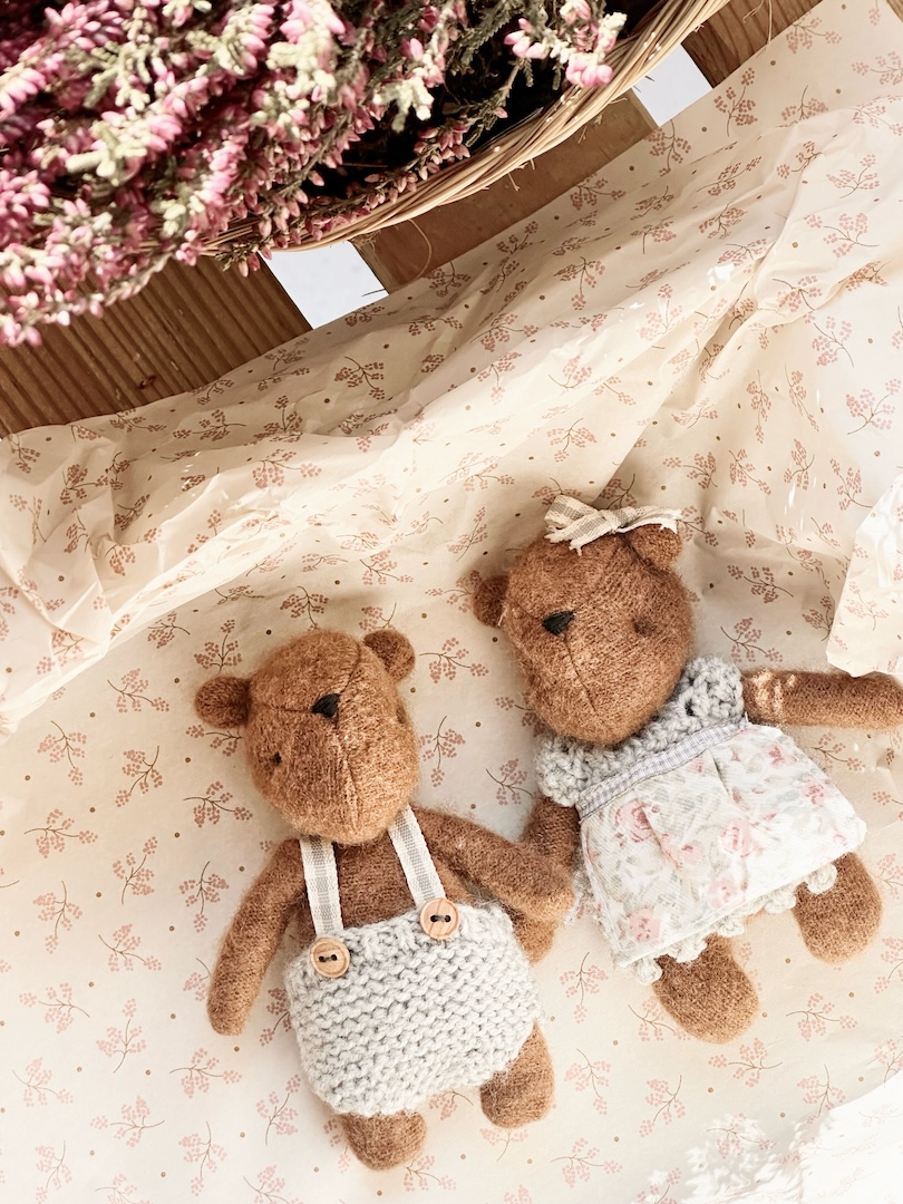 Pareja de ositos elaborados de forma artesanal y vestidos con la ropita más delicada tejida a mano.